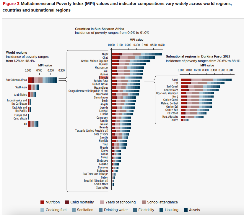 At the continental level, Ethiopia’s MPI ranks 34 out of the 41 African countries in the study.