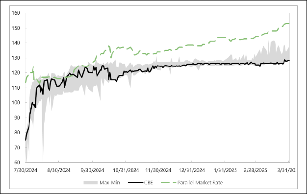 As Figure 1 illustrates, the premium between official and parallel market rates increased to 15% by April 2025, according to the IMF. However, recent market data suggests the premium has now doubled to 30%.