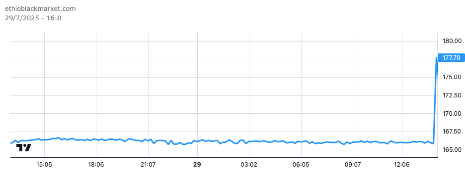 Ethiopia’s parallel foreign exchange market rate continues to skyrocket, with the exchange rate hitting a staggering 174 Ethiopian Birr (ETB) per USD — a sharp increase from the 150 ETB of just days ago, and a significant jump from the official market rate of 134 ETB.