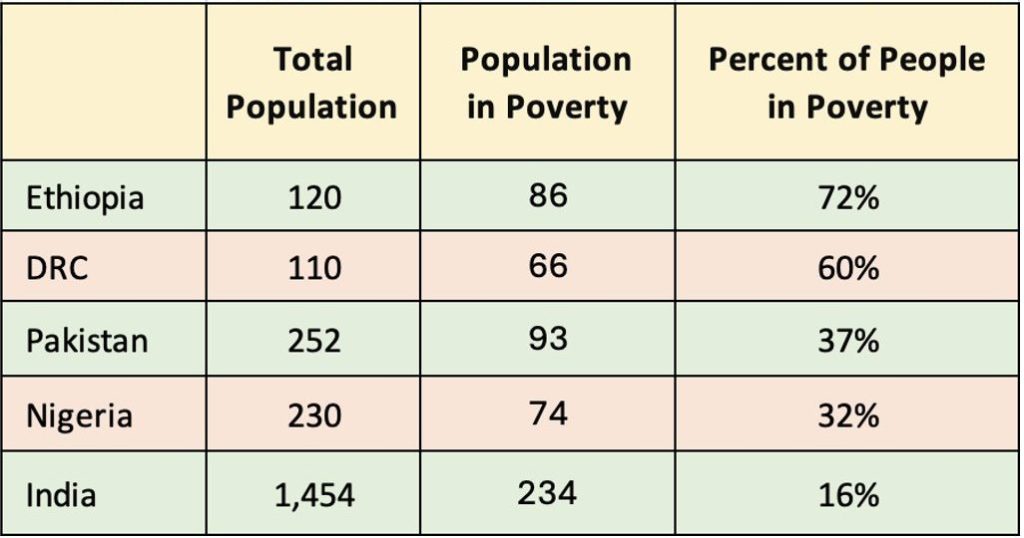 More specifically, of Ethiopia’s 120 million population, 86 million are in multidimensional poverty — a staggering 72% — the highest percentage of a population in multidimensional poverty in the world (Figure 3).
