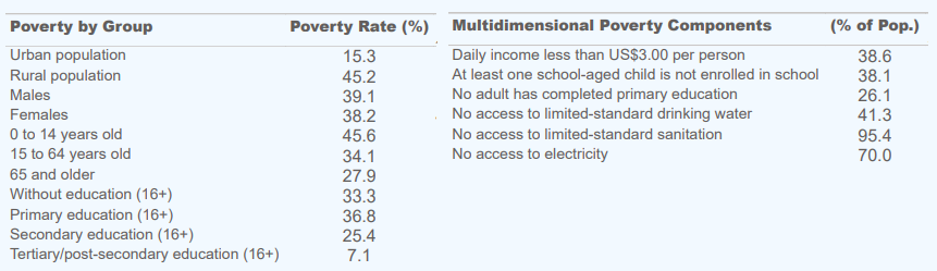 Furthermore, disparities in access to public services by income are stark, with sanitation facilities and electricity connections being nearly three to four times more prevalent in the top 20% of the country than in the bottom 20%. The poorest households often experience isolation from markets and public services and are disproportionately affected by climatic shocks and food shortages.